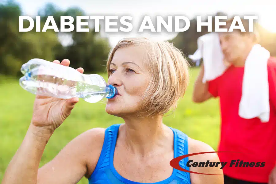 Some good tips for staying in control of your diabetes in the warmer weather is to make sure you drink plenty of water to avoid dehydration, test your blood sugar more often, stay inside during the hottest times of the day, wear loose fitting light clothing, and have a go-bag ready for emergencies. Make sure that you talk to the front desk if you start to feel anything out of the ordinary when working out at Century Fitness.