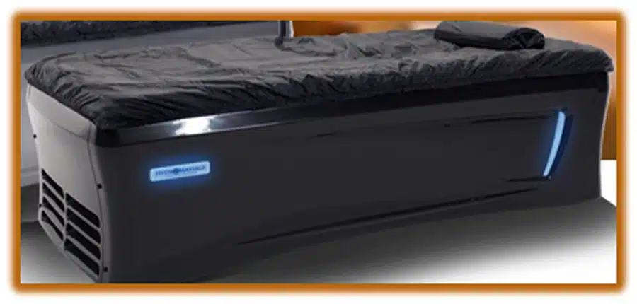 The HydroMassage bed uses warm, hydro-jet nozzles under a waterproof layer that massages the midline section of the body. You can target certain areas, such as the back, or let the bed give you a full body massage. The pressure, or force, of the massage jets are adjustable by the user along with target areas and speed.